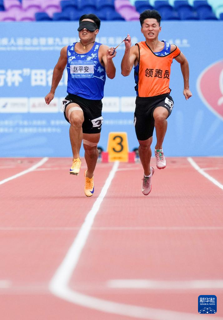当日,第十二届全国残疾人运动会暨第九届特殊奥林匹克运动会田径男子100米T11级决赛在广州举行。