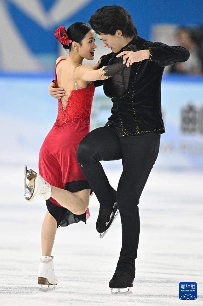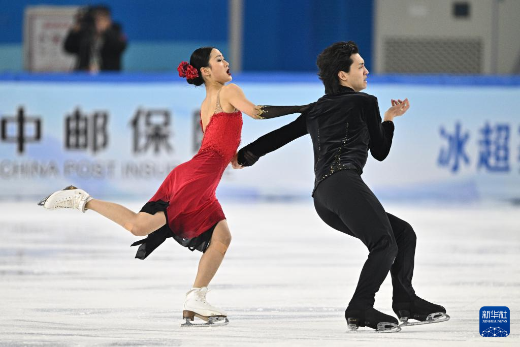 12月27日,吉林省体育局冰上运动管理中心组合王诗玥(左)/柳鑫宇在冰舞自由舞比赛中。他们获得冰舞项目冠军。