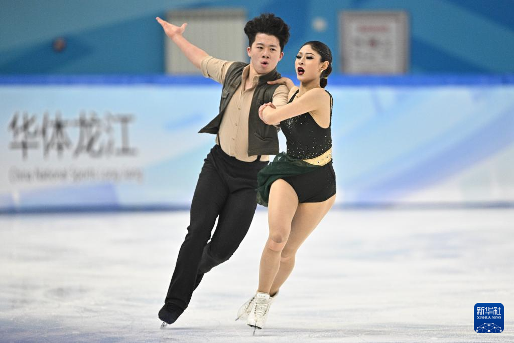 12月27日,黑龙江省冰上训练中心组合任俊霏(左)/邢珈宁在冰舞自由舞比赛中。他们获得冰舞项目亚军。