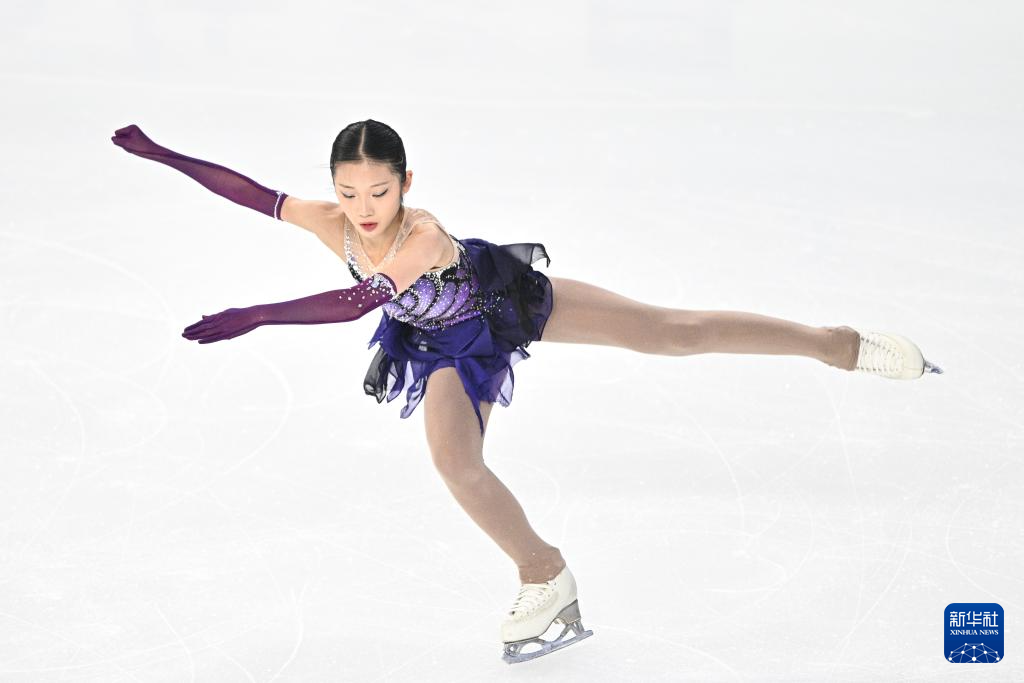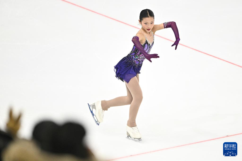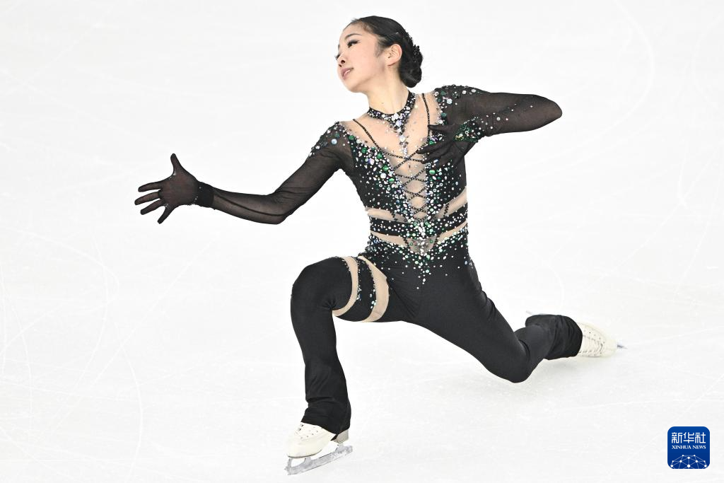12月27日,北京市冬季运动管理中心选手金书贤在比赛中。她在女子单人滑短节目比赛中位列第一。