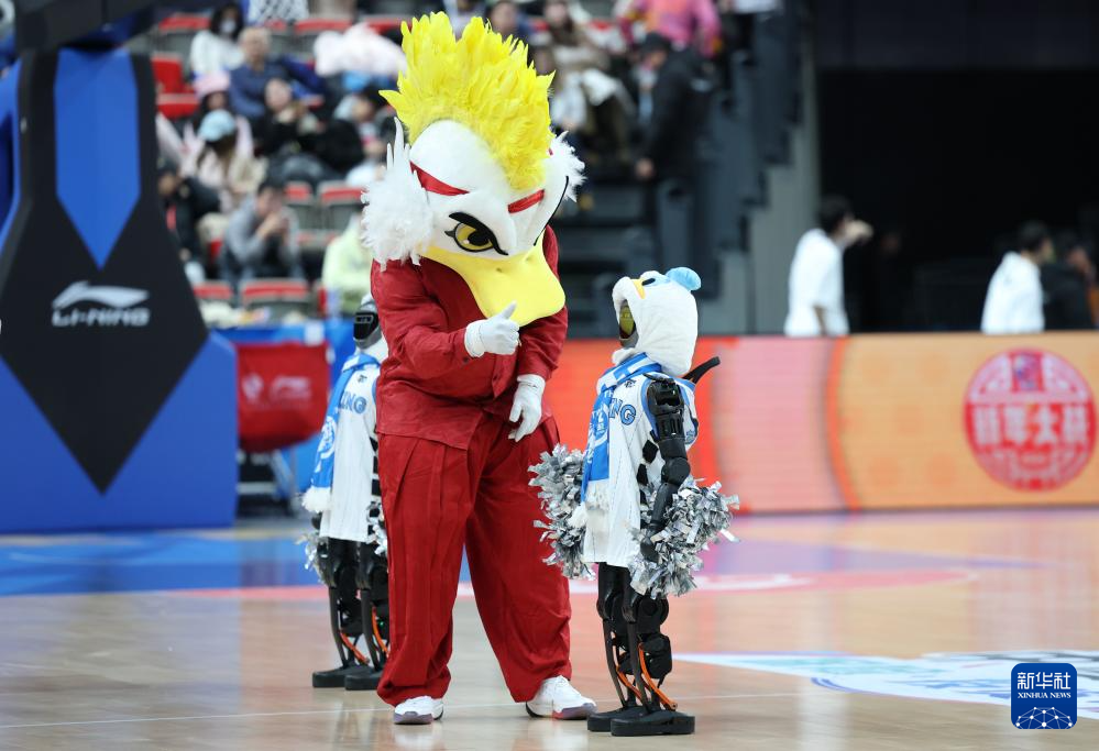1月1日,中场休息时,人形机器人在为现场观众表演。