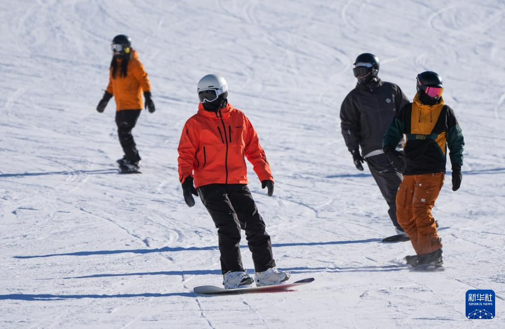 1月18日,滑雪爱好者在新疆阿勒泰将军山国际滑雪度假区滑雪。