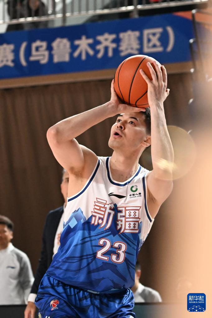 1月25日,新疆伊力特队球员阿不都沙拉木在比赛中投篮。