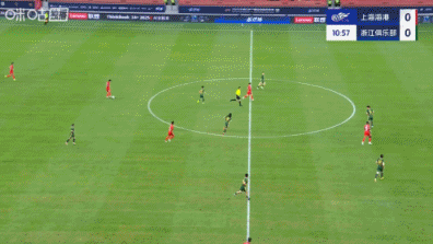 比赛第11分钟,海港右路送出传中,刘浩帆赶在海港球员前伸脚解围,但不慎自摆乌龙,门将赵博也无奈摇头。场上比分海港1-0领先浙江。
