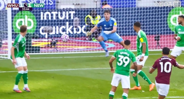 世界波!帕奎塔禁区外远射轰入近角,西汉姆1-1扳平纽卡