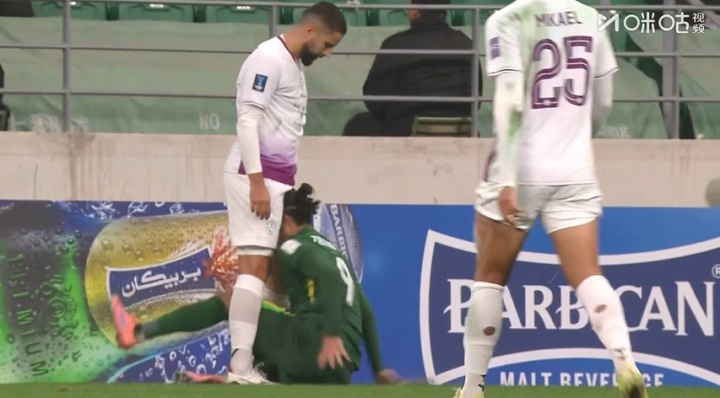 少儿不宜!张玉宁上半场与对方球员发生肢体冲突,两人各吃一黄