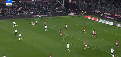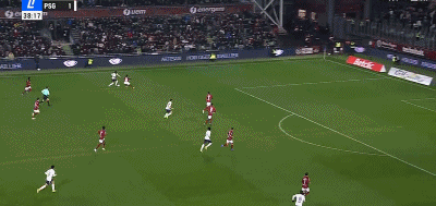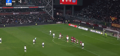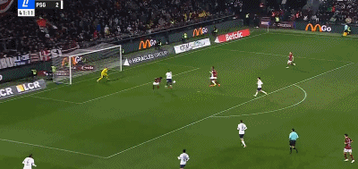 第42分钟,扳回一城,德曼盖外围暴力抽射破门,梅斯1-2巴黎