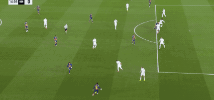 第14分钟,亚马尔原地摆脱送出妙传,费兰·托雷斯拍马赶到,第一时间射门,皮球稍稍高出。