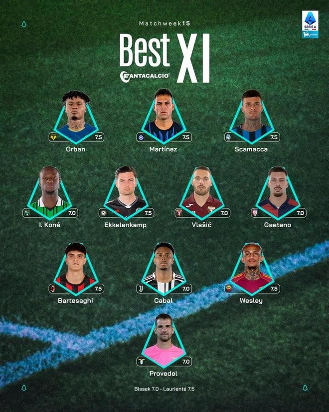 北京时间12月16日意甲日报,意甲官方公布了联赛第15轮的最佳阵容,劳塔罗、巴尔泰萨吉、卡瓦尔入选。