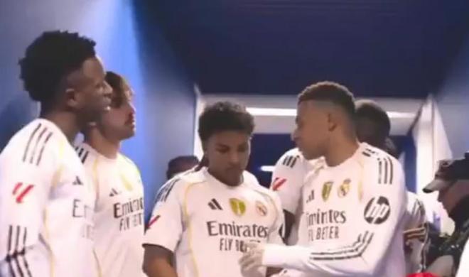 视频画面中,皇马球员在下半场入场前的球员通道中,姆巴佩对罗德里戈说:我和维尼会突破并带走防守球员,给你拉开空间……你可以的。