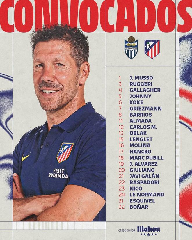 北京时间12月17日西甲日报,马德里竞技官方公布了他们国王杯第三轮客战西协乙球队巴利阿里的大名单,瑟洛特、巴埃纳、马科斯-略伦特以及希门尼斯缺阵。