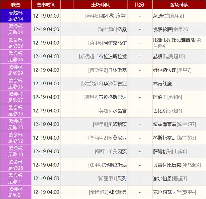 其他赛事比分: