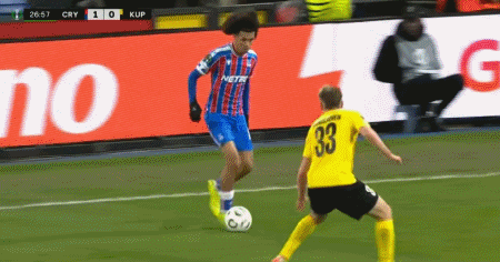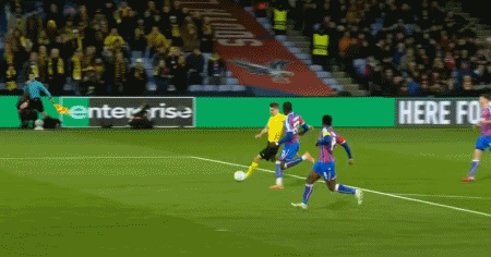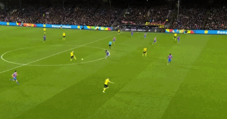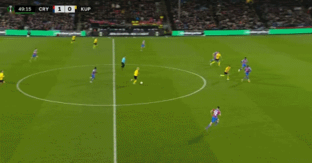 第5分钟,德文尼助攻,乌切内切后外脚背射门得分,水晶宫1-0古比斯