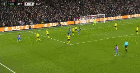 第76分钟,米切尔传中,德文尼破门将比分扳平,水晶宫2-2古比斯