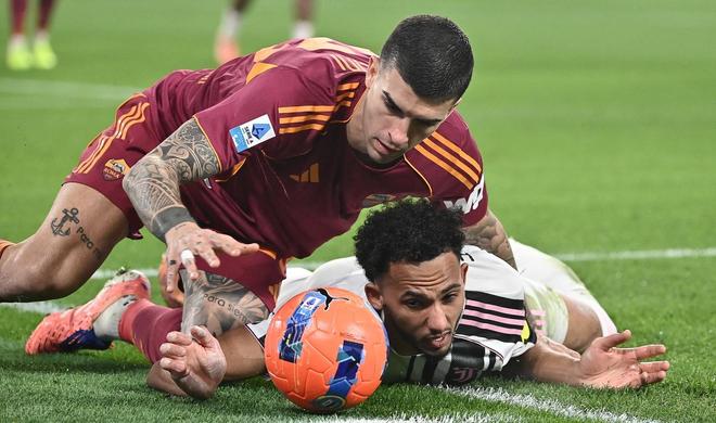 第69分钟,尤文右路压上,泽格罗瓦禁区角上晃开防守后过顶斜吊门前,麦肯尼小禁区前沿抢点回头望月甩头攻门,斯维拉尔奋勇将球扑出,门前一片混战中麦肯尼机敏将球抢到往左侧一捅做球,奥彭达将球挡入空门,打入意甲后的首粒联赛进球,尤文2:0扩大领先优势。仅仅5分钟后,罗马这边做出回应,弗格森禁区左侧拿球强行突破后左脚大力抽射,门将迪格雷戈里奥奋力一扑,后点巴尔丹齐机敏跟进将球挡入空门,罗马1:2快速扳回一球。第82分钟,尤文右路快速反击转移左侧,伊尔迪兹禁区前沿接球突入禁区闪出空当大力兜射,BOOM的一声皮球被门柱挡出。最终尤文主场2:1小胜罗马,拿下这场争4大战。