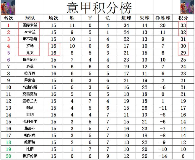 意甲最新积分战报 争4有望!尤文小胜罗马 将分差缩小到1分