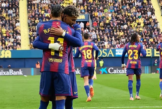 领头羊巴萨顶住客场压力,2-0战胜了比利亚雷亚尔!这一场比赛巴萨在开局略显被动,但是顶住了黄潜的三板斧之后逐渐占据上风,第12分钟拉菲尼亚突破造点,随后点射打破僵局。第39分钟雷纳托-韦加在身后铲倒了亚马尔,直接领到了红牌。多打一人的巴萨优势更加明显,全场拥有了79%的控球率,下半场第63分钟亚马尔抽射建功锁定胜利。