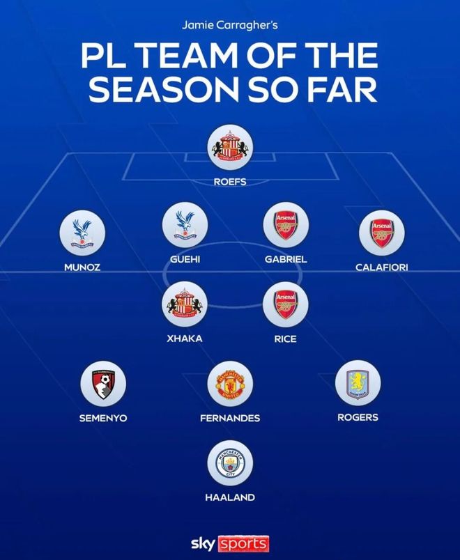 卡拉格评到目前为止英超的最佳阵容:B费入选