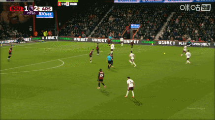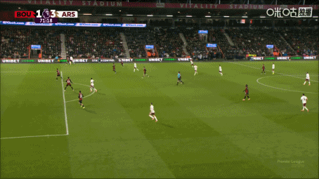足球日报01月04日播报讯 英超第20轮,阿森纳客战伯恩茅斯,第71分钟,萨卡前场右路下底倒三角传中,赖斯跟进抽射破门达成双响,阿森纳3-1领先!