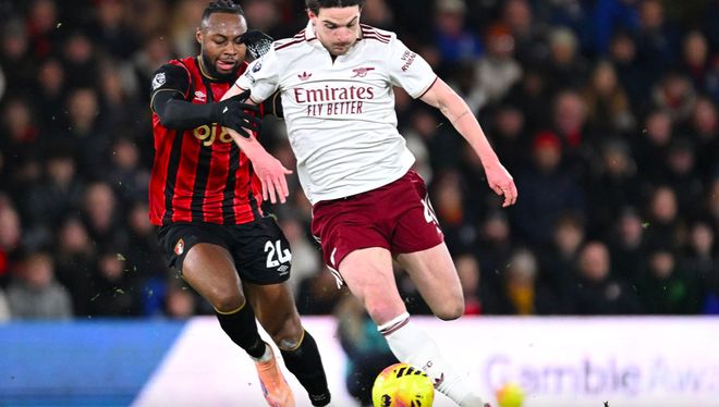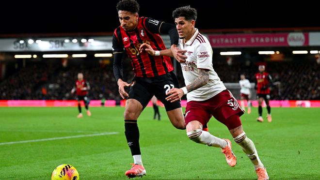 第10分钟,在没有任何高压逼抢的情况下,加布里埃尔大脑短路,直接将球传给了埃瓦尼尔森,后者笑纳大礼,伯恩茅斯意外取得领先。