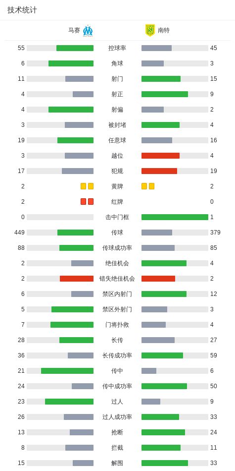 第56分钟,比拉勒-纳迪尔战术犯规吃到第二张黄牌,马赛九人应战