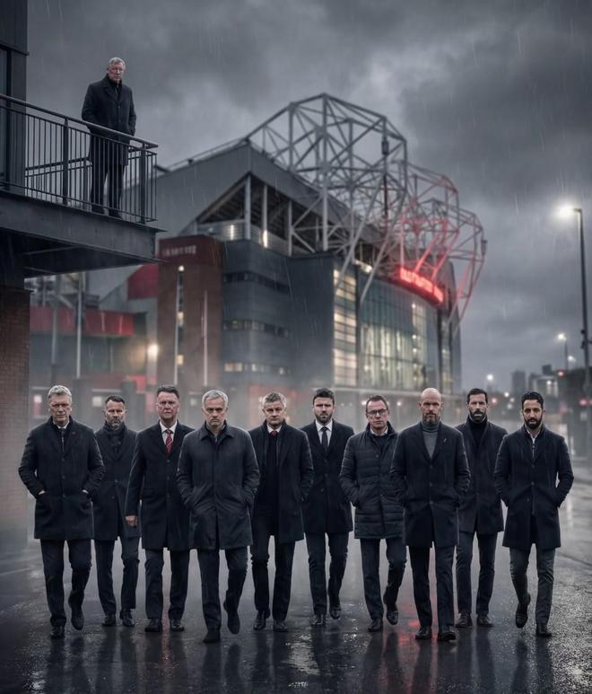 北京时间1月5日英超日报,在阿莫林从曼联下课之后,意大利名记罗马诺在社交媒体上发布了一张海报,内容为后弗格森时代曼联的10任主帅并肩在老特拉福德球场外的阴雨中前行,弗格森则在高处凝视着他们。