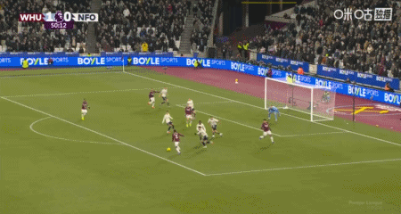 然而领先后,西汉姆联却迟迟无法扩大优势,反而被森林队多次威胁球门。第42分钟,奥多伊左路内切兜射远角,皮球击中横梁弹出,西汉姆联逃过一劫。