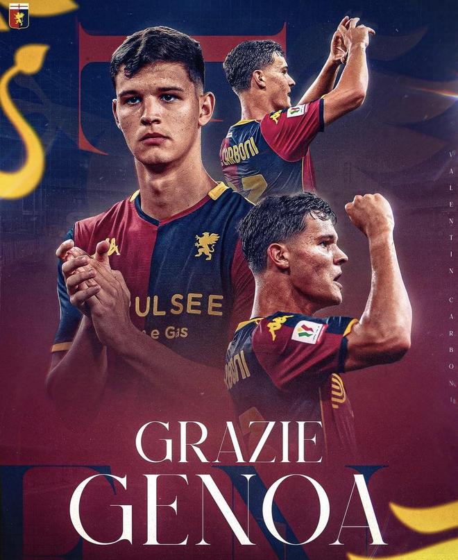 提前终止租借,国米小将巴伦廷-卡尔博尼社媒发文告别热那亚