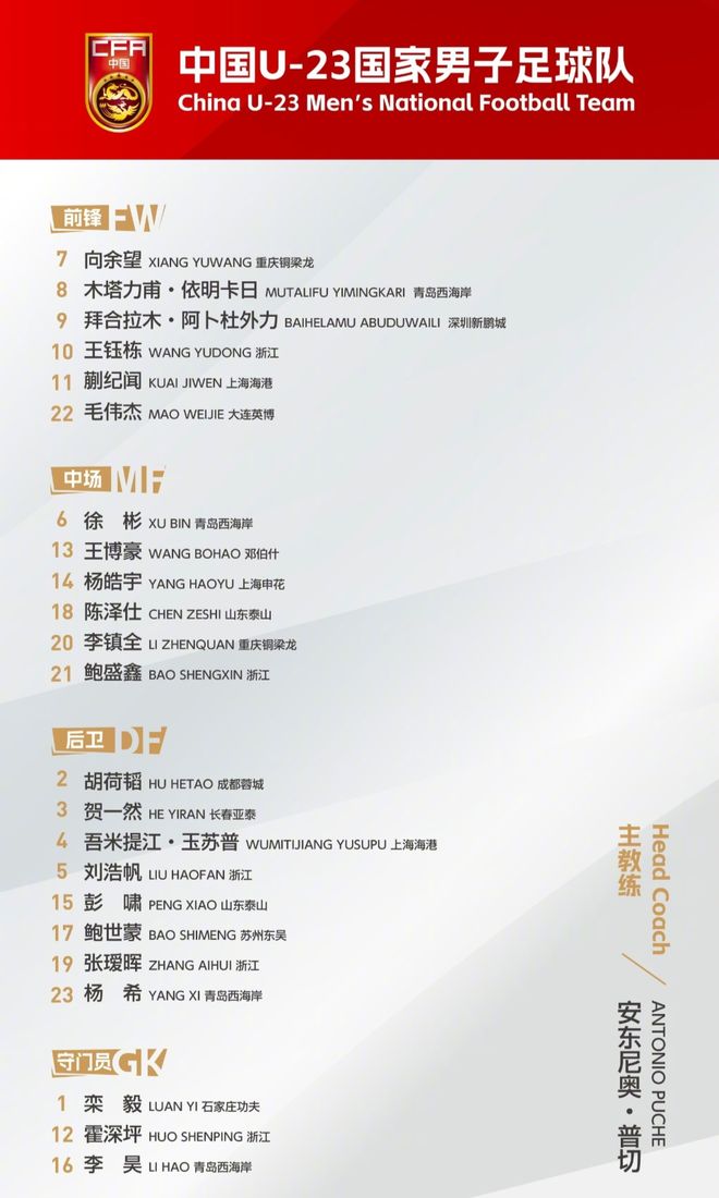 进攻端,19岁的王钰栋是U23国足最为倚重的“爆破点”,身高1米88的拜合拉木则是安东尼奥进攻的战术支点。