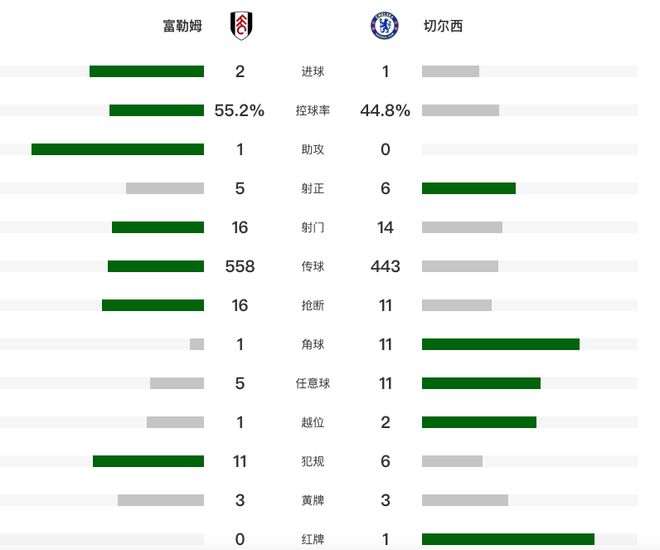 半场结束前,威尔逊的进球因为希门尼斯越位被判无效。第55分钟,希门尼斯头球打破僵局。第72分钟,德拉普门前补射扳平比分。第81分钟,哈里·威尔逊劲射破门。最终,在这场西伦敦德比中,富勒姆主场1-0战胜总身价11.8亿的切尔西,最近6轮保持不败的同时,积分追平切尔西,切尔西最近8轮联赛只有1胜,其中最近5轮3平2负,落后榜首的阿森纳17分。