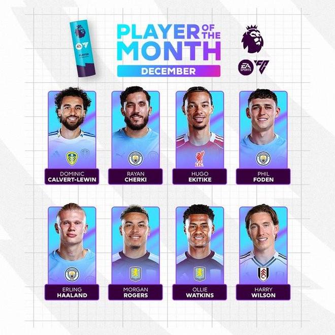 官方消息,英超12月最佳球员候选名单公布,哈兰德、埃基蒂克、勒温、福登、摩根-罗杰斯、沃特金斯、谢尔基、哈里-威尔逊在列。