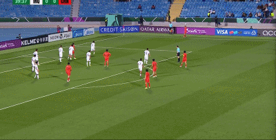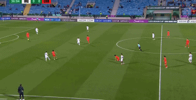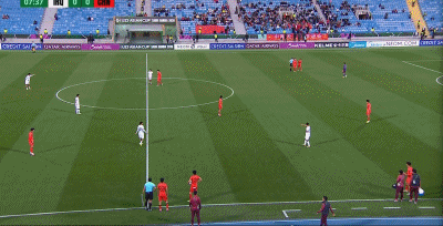 第25分钟,U23国足前场抢断后传球被解围;之后杨希禁区内射门打高