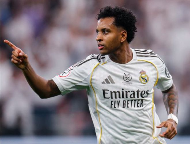 半场结束,皇马1-0暂时领先。下半场开始只有10分钟,接到巴尔韦德的妙传,罗德里戈轻巧过人后,冷静破门。