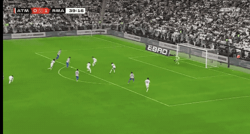 随着比赛的进行,马竞逐渐加强进攻,库尔图瓦越来越忙,第38分钟,马竞上演三连击,继续考验皇马的防线。