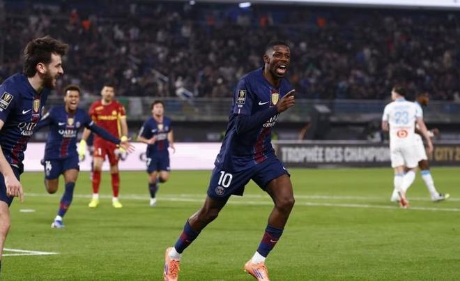 金球先生登贝莱,开场13分钟就帮助大巴黎取得了1-0的领先,随后马赛大举压上反扑,虽然舍瓦利耶状态神勇,连续贡献神扑救主,但马赛还是在下半场靠着格林伍德的进球和帕乔的乌龙反超了比分,伤停补时最后阶段,贡萨洛拉莫斯打入绝平进球,续命成功的大巴黎,点球大战靠着舍瓦利耶的神勇发挥,6-3击败马赛完成了法超杯的四连冠。