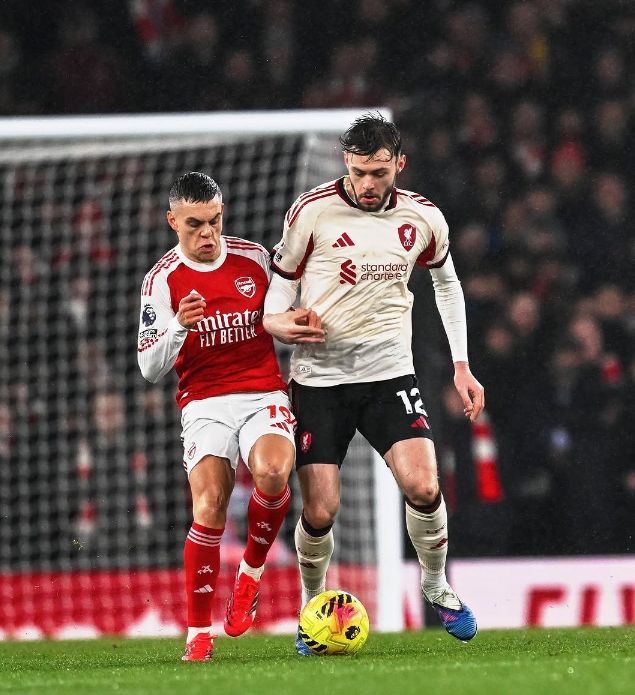 第26分钟阿森纳后防出现巨大失误,阿利森的传球直接送到了布拉德利的脚下,后者也是毫不犹豫,直接起脚吊射,可惜运气不佳,皮球击中横梁被弹出,斯洛特上任之后,利物浦在联赛31次击中门框,同期英超第一,半场结束之前,阿森纳突然发力,连续形成有威胁的进攻,但赖斯和萨卡的打门都被利物浦后防化解,两支球队带着0-0的比分,回到了中场更衣室。