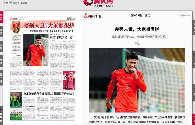 当然也有媒体认为本场比赛国足表现不错,来自上海的媒体《新民晚报》表示,伊拉克整体实力处于绝对领先,国足能够拿到1分已经算非常优秀。该媒体认为伊拉克是小组内第一档的球队,中国则是第四档,所以本场比赛能够逼平强敌,对于这些年轻的小伙子来说已经非常优秀了。