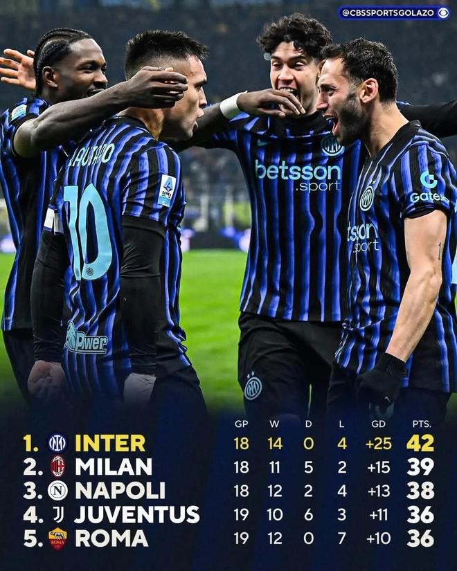 因为身后的米兰和那不勒斯本轮都只拿到1分,与榜首国米的分差分别被拉大到3分和4分,国米终于打出了一场比赛的容错度,在一月份双线作战的密集赛程里可以有一定的心理优势。