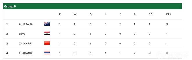 中国队与伊拉克队同积1分,但因在公平竞赛积分上处于劣势(中国队两张黄牌,伊拉克一张),暂时排名小组第三,泰国队0分垫底。