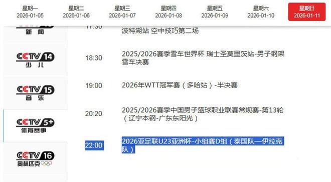 北京时间1月11日足球日报,沙特U23亚洲杯D组第二轮进行两场比赛,当晚19:30,U23国足VS澳大利亚U23,截至本文发稿前,央视三大体育频道暂时没有直播计划,直播男篮比赛,但不排除临时改变直播的可能。当晚22:00,泰国U23VS伊拉克U23队,央视体育赛事频道CCTV5+将进行直播。