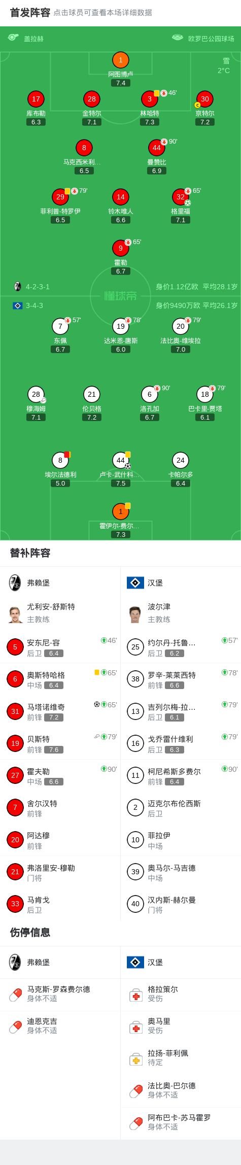 北京时间1月10日德甲日报德国足球顶级联赛 联赛 第16轮,弗赖堡主场对阵汉堡。弗赖堡格里福破门,马塔诺维奇破门。汉堡卢卡-武什科维奇破门。最终比分弗赖堡 2-1 汉堡。