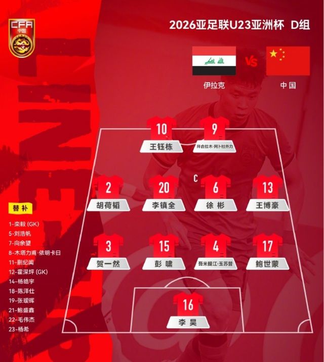 北京时间2026年1月11日足球日报消息。今天晚上,U23亚洲杯小组赛第二轮比赛将全面开打:19点30分,中国队VS澳大利亚。22点,伊拉克VS泰国。今夜两场比赛将关乎于小组出线形势,目前,中国队的首发阵容已经出炉,我们来看一下: