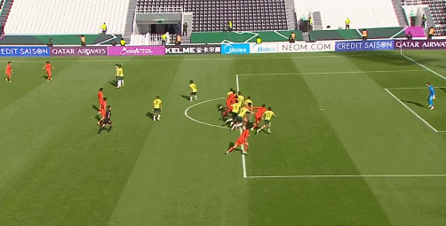 对阵澳大利亚的第43分钟,王钰栋主罚任意球斜传,后卫解围不远,彭啸左脚劲射破门,1比0!