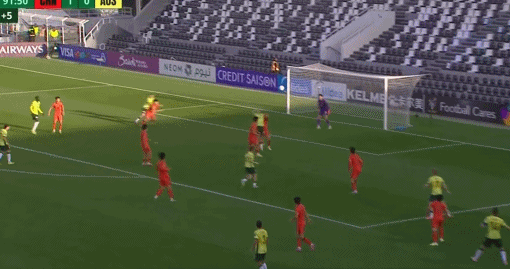 第92分钟,李昊飞身扑救,球被博瓦利纳用手挡入球门,主裁判回看慢镜头之后认定进球无效。