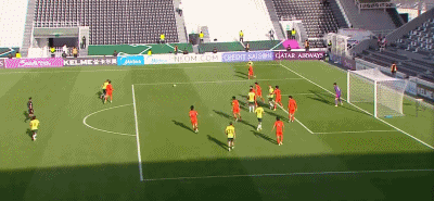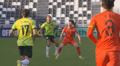 第14分钟,澳大利亚球员头球力量不足,李昊将球没收