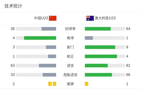 在U23亚洲杯小组赛第二轮的一场较量中,中国U23与澳大利亚U23展开激烈对决。比赛中,中国U23球员彭啸抓住机会完成破门,为球队取得领先。此后双方均未能改写比分,最终中国U23以1-0战胜对手,全取三分。