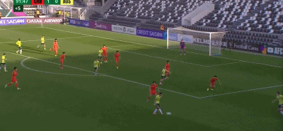 第43分钟,彭啸禁区内爆射破门,U23国足1-0领先澳大利亚!