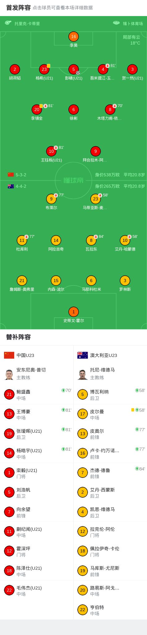 U23国足1-0澳大利亚U23,彭啸制胜球,李昊多次关键扑救