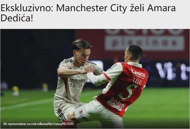 波黑媒体Oslobodjenje消息,在签下塞梅约之后,曼城现在正寻求加强防线,而本菲卡后卫阿马尔-德迪奇正是他们的目标之一。