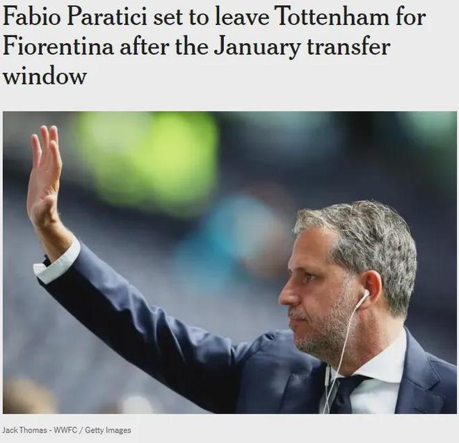 报道称,帕拉蒂奇将帮助热刺在一月份完成交易任务,然后他将因为个人原因重返意大利,目的地预计是佛罗伦萨。